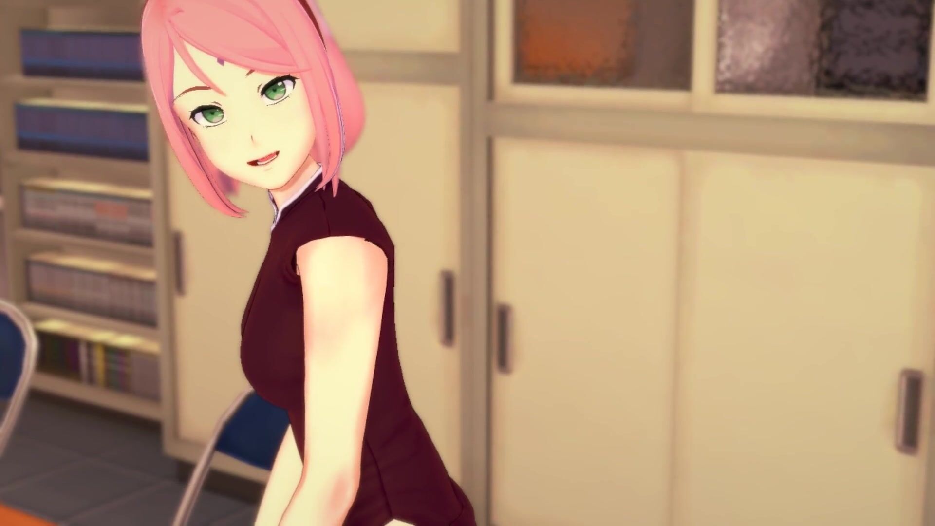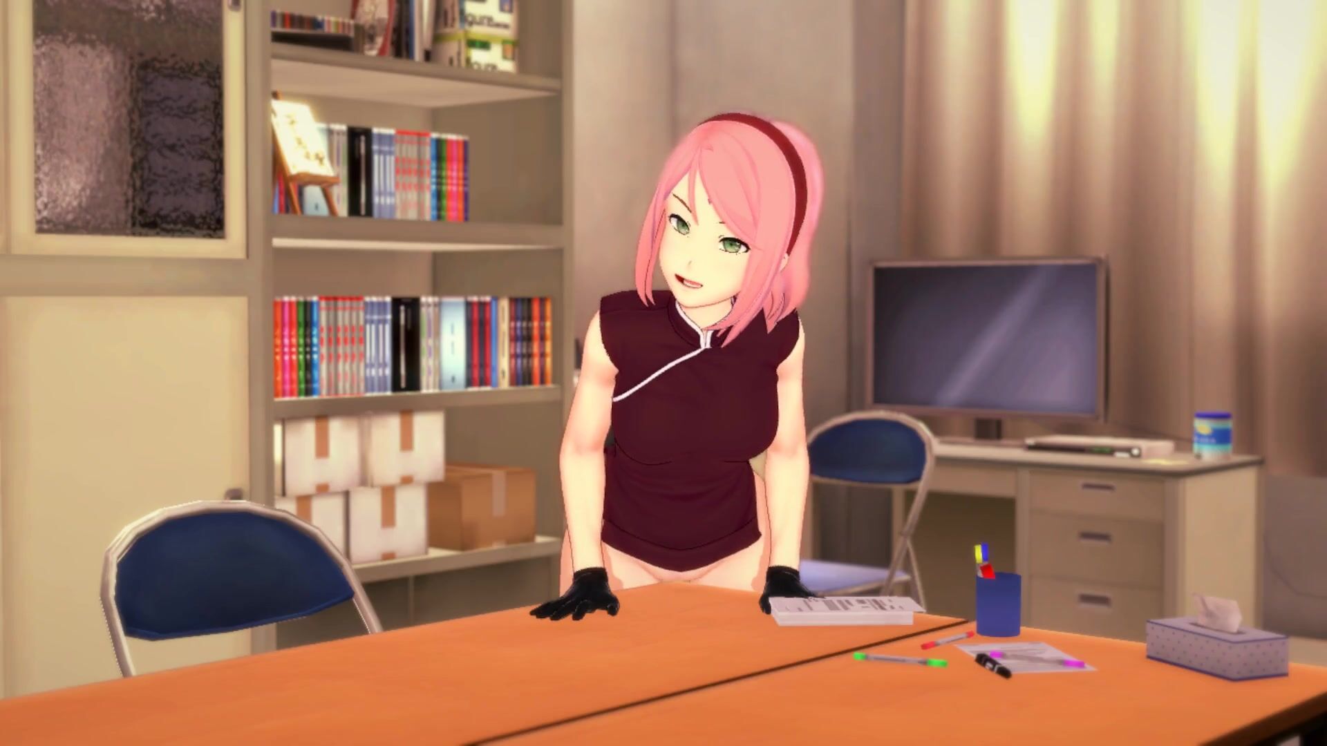 3D HENTAI Sakura masturbates at the edge of the table