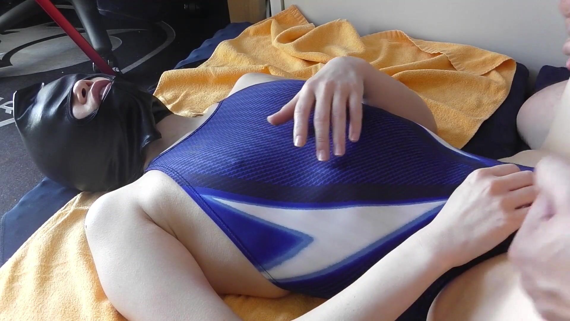 全頭マスク&競泳水着姿でバック突き ナマ中出し