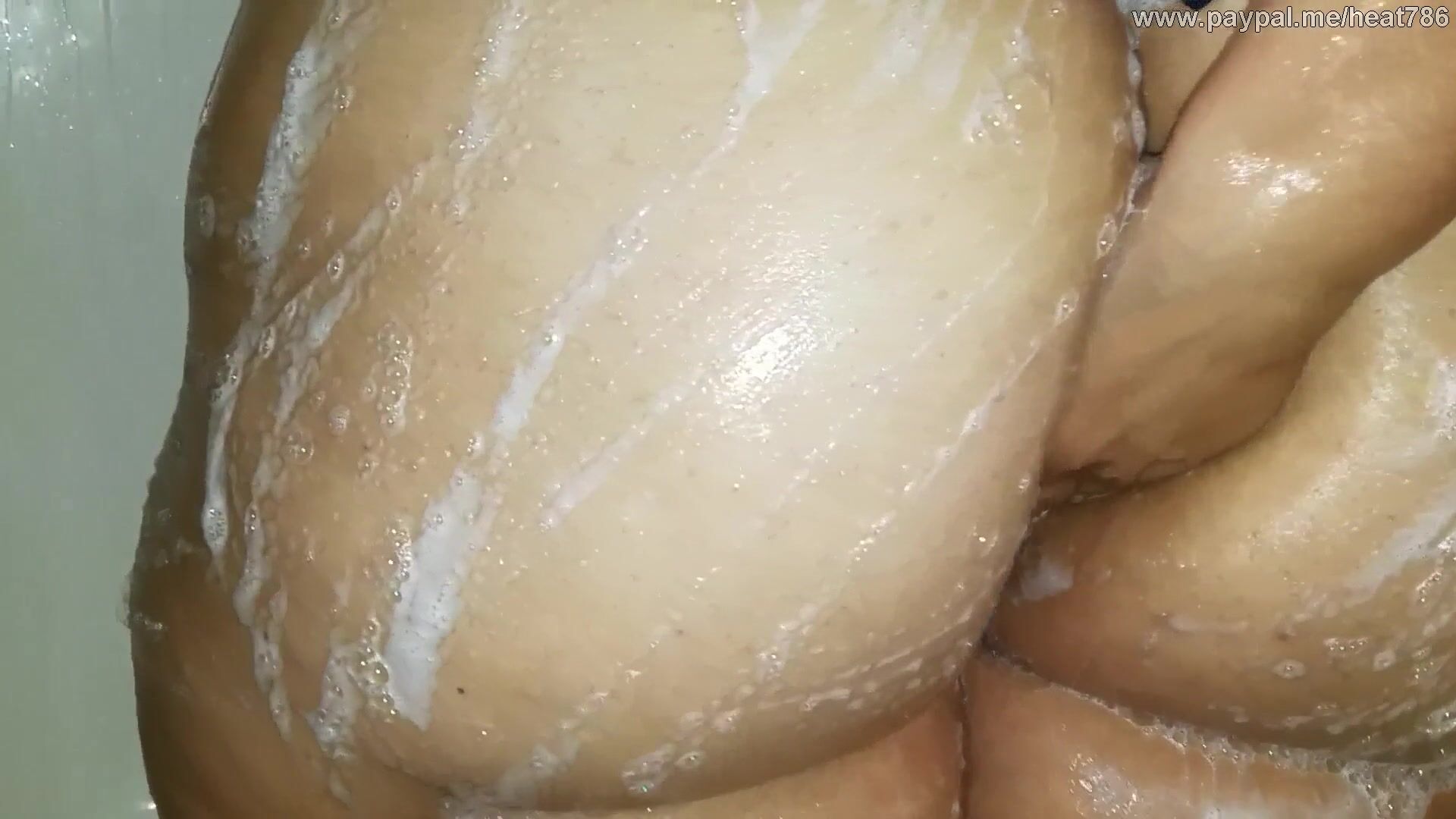 Yong Latina taking a shower, nice soapy ass, I hope she drops the soap.