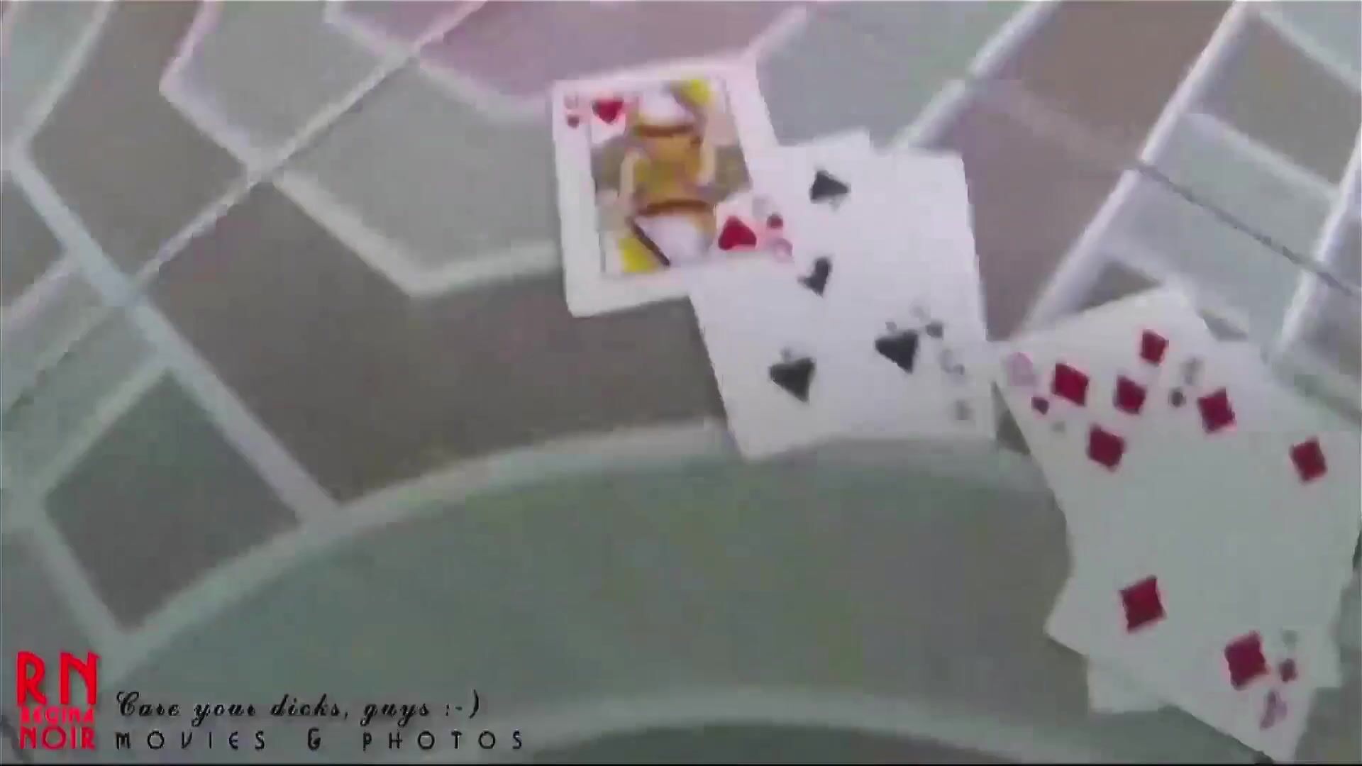 Strip-poker game. Lucky guy and naked girlfriend. Gambling striptease poker