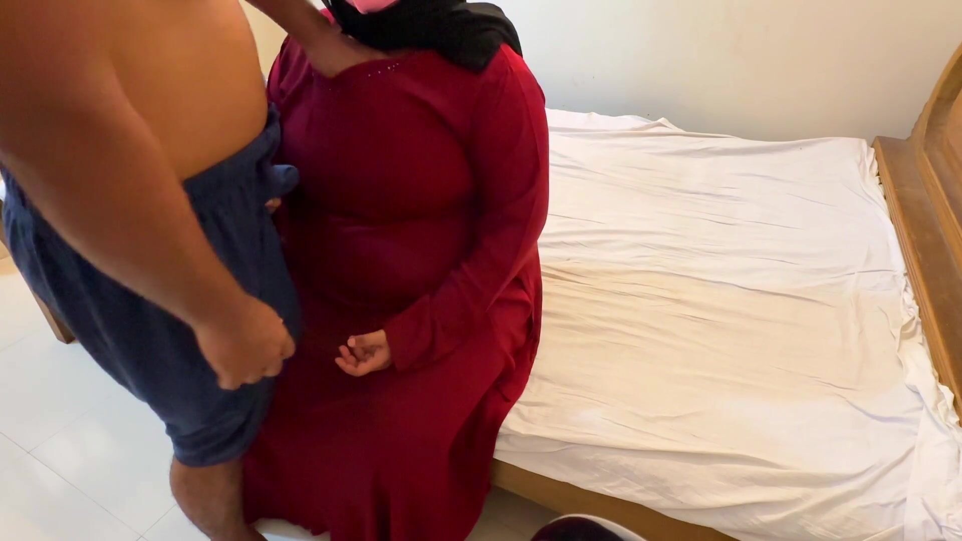 يمارس الجنس مع حماة مسلمة ممتلئة ترتدي البرقع الأحمر والحجاب Fucking Chubby red burqa & Hijab - Cum