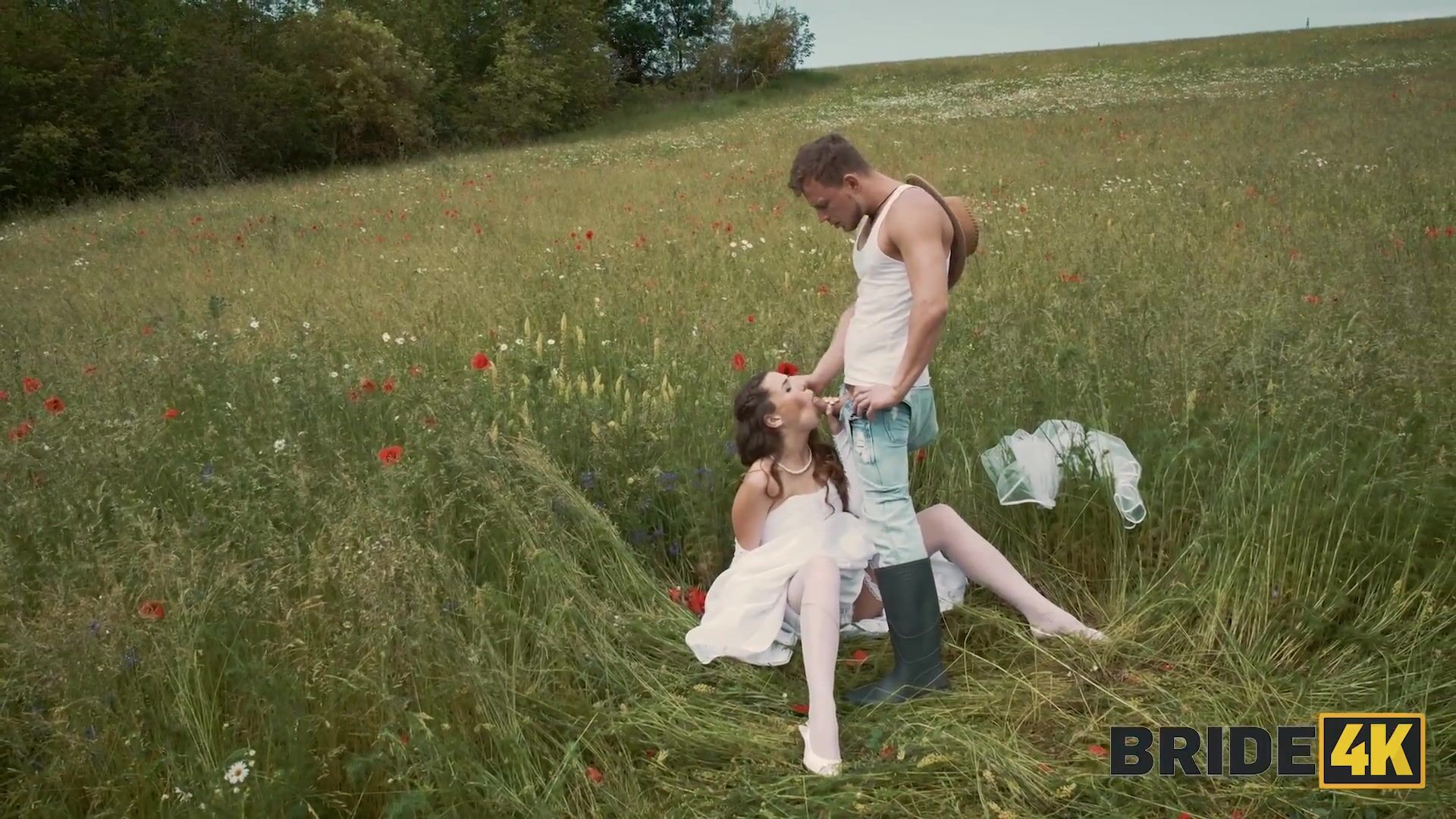 BRIDE4K. Pretty brunette bride fucks a horny shepherd in a summer field
