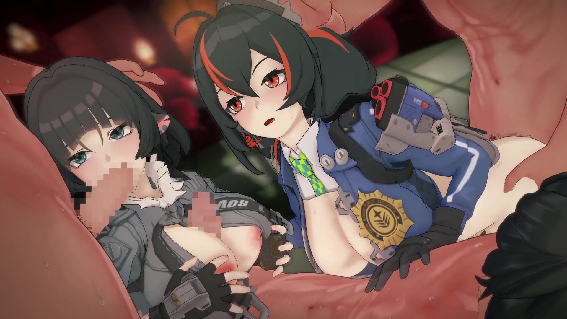 【ゼンレスゾーンゼロ 乱交セックス】ジェーン・ドゥ,朱鸢(しゅえん)が集団エッチする3Dエロアニメ動画(ZZZ Jane Doe,Zhu Yuan group orgy sex.)
