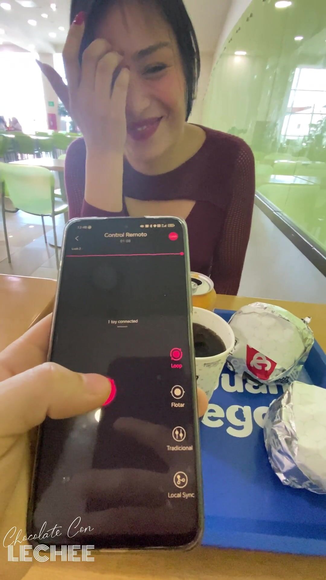 Jugamos con Lovense en el patio de comida