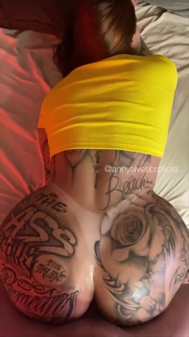 Brazilian brunette Anny Alves tattooed doing anal after losing a bet
